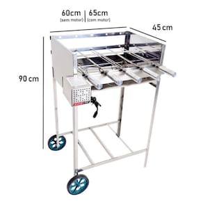 Com dimensões de 60cm de largura sem motor e 65cm com motor, 45cm de profundidade com regulagem e 90cm de altura, essa churrasqueira é compacta e fácil de transportar, facilitando o seu uso em diferentes ambientes.