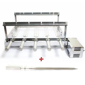Churrasqueira Giratória Inox 5 Espetos Motor Lado Direito – Curto - Cortesia 1 Espeto Espada Giratório Grill Elétrico Rotativo Laurindos
