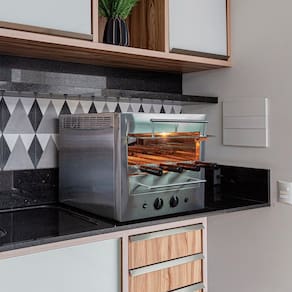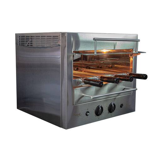 A Churrasqueira Assador Rotativa a Gás Natural Bake Premium 04 de Bancada é a solução ideal para sua cozinha, espaço gourmet, cantinho do churrasco ou onde você preferir. Ela possui uma estrutura em aço inox 304 para maior durabilidade e facilidade na limpeza. Sua resistência possibilita maior potência e rapidez para assar seu churrasco. O sistema de rotação de espetos, permite assar de forma homogênea todos os tipos de carne, deixando seus alimentos muito mais saborosos. Possui bandeja coletora de gordura, facilitando a limpeza e deixando seu alimento muito mais saudável. Além disso, possui grelha em aço com acabamento cromado para gratinar pizzas, carnes e outros alimentos. A Churrasqueira Assador Bake Premium 04 é ecologicamente correta, não produz fumaça e assa seu churrasco sem prejudicar o meio ambiente. CARACTERÍSTICAS TÉCNICAS: - Produzida em Aço Inox 304 - Lâmpada Interna - Sistema de Rotação de Espetos - Aquecimento por Gás Natural 2,2 Kpa (220 mmCA) - Obtém 2 Queimadores Infravermelhos - Grelha com Acabamento Cromado - Vidro Temperado Reticulado - Desenvolvida para Bancadas - Capacidade de 1,5Kg de Carne por Espeto - Tensão Bivolt - Potência do Motor de 100w - Garantia de 6 Meses MEDIDAS TOTAIS: Altura: 49,5 Cm Largura: 55 Cm Profundidade: 57 Cm Peso: 23 Kg ITENS INCLUSOS: - 1 Churrasqueira Bake Premium 04 - 1 Bandeja Coletora de Gordura - 1 Grelha Cromada - 3 Espetos Simples - 1 Espeto Triplo INFORMAÇÕES ADICIONAIS: *As entregas são feitas em horário comercial e a montagem fica por conta do comprador. **As imagens ambientadas são meramente ilustrativas podendo apresentar itens que não compõe o produto. As cores do produto podem variar de acordo com o monitor ou percepção visual. ***Limpeza e/ou manutenção devem utilizar escova com cerdas macias e pano úmido, não utilizar produtos abrasivos. Produto Certificado conforme portaria INMETRO 371 de 29 de dezembro de 2009. CASATONA REPRESENTANTE AUTORIZADO HOPE GOURMET ® Marca: Hope Gourmet