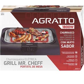 Churrasqueira elétrica para uso em bancadas, ideal para grelhados, assados e hambúrgueres. Possui controle de temperatura de 100°C a 250°C e depósito de gordura removível para facilitar a limpeza.