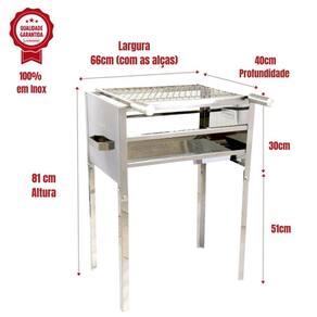Acompanha grelha moeda de Inox 53cm x 40,5cm