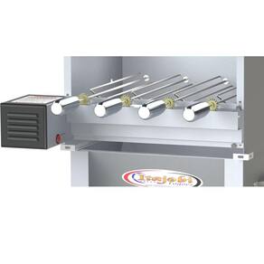 A churrasqueira a carvão com espeto giratório é ideal para quem procura um equipamento rápido e eficiente para assar carnes no espeto, mantendo sua qualidade e sabor. Sua estrutura é confeccionada inteiramente em chapa de aço inox 430, além de seus espetos, garantindo máxima resistência e durabilidade a churrasqueira profissional. Suas laterais e seu fundo são inteiramente fechados, por isso acender a churrasqueira fica muito mais fácil, já que o vento não atrapalha essa função. Possui 4 espetos giratórios de 52 cm cada que funcionam através de um motor bivolt, dessa forma é possível manter os alimentos assados e suculentos por completo. A caçamba desta churrasqueira a carvão possui rodas para facilitar sua locomoção e sapatas revestidas com PVC para não agredir a superfície em que será instalada.