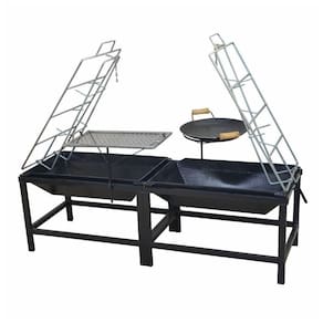 01 Churrasqueira Lareira Dupla Fogo de Chão Aço Carbono 125x44x43cm.