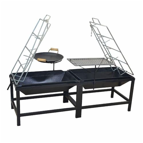 01 Churrasqueira Lareira Dupla Fogo de Chão Aço Carbono 125x44x43cm.