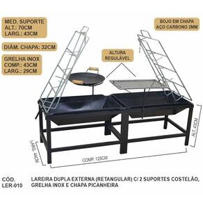 A lareira churrasqueira fogo de chão externa a lenha retangular em aço com suporte para costelão, grelha e picanheira é um equipamento completo e multifuncional, ideal para áreas externas como varandas, quintais, chácaras e espaços gourmet. Ela serve tanto para aquecer o ambiente em dias frios quanto para proporcionar uma experiência culinária diferenciada, unindo o calor aconchegante do fogo com a tradição do churrasco rústico. Fabricada em aço resistente, suporta altas temperaturas e uso prolongado. O suporte para costelão permite assar cortes grandes de carne no estilo fogo de chão, enquanto a grelha é perfeita para preparar carnes variadas, legumes e acompanhamentos. A picanheira complementa a estrutura, possibilitando o preparo de cortes nobres como a picanha com sabor autêntico e defumado. Seu design retangular favorece o aproveitamento do espaço e o convívio entre as pessoas ao redor do fogo. Assim, essa lareira oferece aquecimento, funcionalidade e uma verdadeira experiência gastronômica ao ar livre, ideal para momentos de lazer e confraternização.