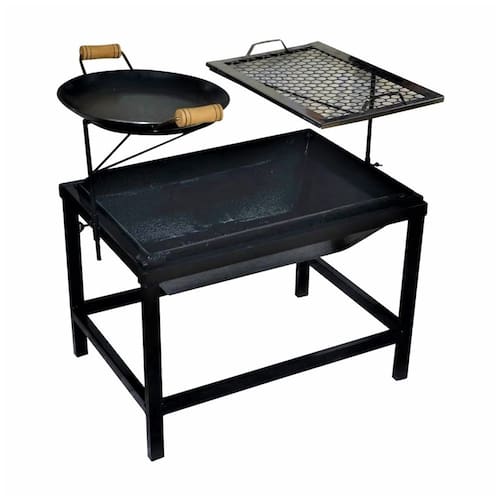 Churrasqueira Lareira Quadrada Portátil Picanheira e Grelha A lareira churrasqueira externa a lenha retangular com chapa de aço com picanheira e grelha é um equipamento multifuncional ideal para ambientes externos, como quintais, varandas e áreas gourmet. Ela serve tanto para aquecer o ambiente em dias frios quanto para preparar alimentos de forma prática e saborosa. A estrutura em chapa de aço carbono garante resistência e durabilidade, suportando altas temperaturas e uso frequente. A inclusão da picanheira e da grelha agrega ainda mais versatilidade ao produto, permitindo o preparo de carnes, especialmente cortes como a picanha, diretamente sobre o fogo, proporcionando um sabor defumado e autêntico. Com seu design retangular, favorece a socialização, já que várias pessoas podem se reunir ao redor do fogo de maneira segura e confortável. É uma excelente opção para quem busca unir funcionalidade, aconchego e momentos de confraternização em um só item. Altura regulável da grelha em aço Inox e da chapa picanheira em aço carbono. Características Técnicas:Material Picanheira: Aço Carbono.Material Lareira: Aço Carbono.Medida Grelha Inox: 43x29cm.Comprimento Lareira: 63cm.Diâmetro Picanheira: 32cm.Material Grelha: Aço Inox.Espessura Lareira: 2mm.Largura Lareira: 44cm.Altura Lareira: 43cm. Itens Inclusos:01 Lareira Churrasqueira a Lenha Retangular Chapa Aço Carbono 63x44x43cm.01 Picanheira em Aço Carbono Alça Madeira 32cm.01 Grelha em Aço Inox 43x29cm. Código: LER005OMProdutoLojaPlast. Marca: Não Informado