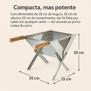 - Ideal para churrascos em ambientes externos como praias, parques, pesqueiros e acampamentos. - Excelente opção para quem possui pouco espaço em casa, graças ao seu design compacto e de fácil armazenamento. Marca: Não Informado