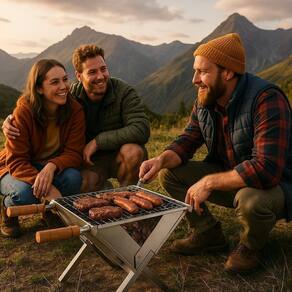- Portabilidade: Com um design em formato de maleta, esta churrasqueira é extremamente fácil de transportar. Perfeita para levar em viagens, acampamentos, piqueniques ou para usar no quintal de casa. - Montagem Simples: A montagem e desmontagem são rápidas e fáceis, sem a necessidade de ferramentas especiais. - Eficiência: A grelha em inox moeda distribui o calor de maneira uniforme, proporcionando um cozimento perfeito para carnes, legumes e outros alimentos. - Design Moderno: Além de funcional, seu acabamento em aço inoxidável confere um visual sofisticado que se encaixa em qualquer ambiente.