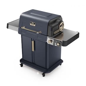 Indicada para instalação em áreas externas ventiladas, a Ninja FlexFlame utiliza botijão de gás propano conectado por mangueira e regulador adequados, além de tomada elétrica para alimentar o sistema eletrônico e o ventilador. A construção reforçada e o acabamento na cor azul conferem durabilidade e visual moderno para varandas gourmet e espaços de lazer.