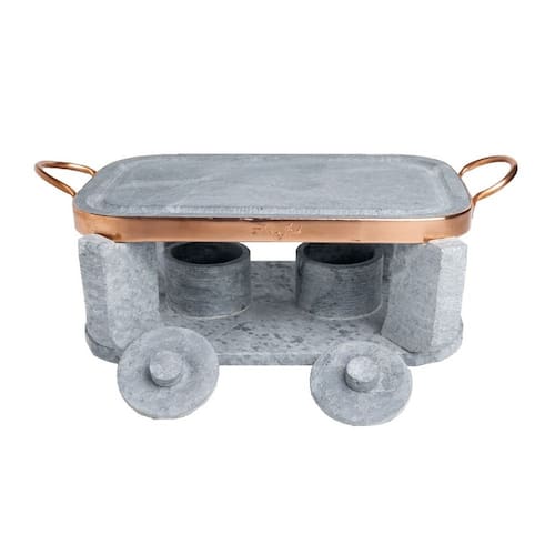 Churrasqueira oval rasa com grelha de carne e fogareiro duplo a álcool, ideal para preparar e servir carnes sem depender de carvão ou energia elétrica. Permite grelhar carnes, linguiças, frangos e legumes de maneira uniforme. O fogareiro duplo a álcool mantém o calor constante. Muito utilizada para servir porções direto à mesa, em churrascos, reuniões com amigos, bares, restaurantes ou em casa. Possui um visual rústico sofisticado. Fácil de utilizar e simples de limpar.Bica móvel