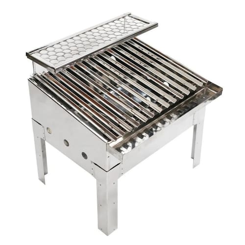 Churrasqueira: a churrasqueira parrilla é um modelo compacto, prático e portátil, podendo ser utilizado na área gourmet, na beira da piscina, no acampamento, no sítio, na varanda do apartamento ou onde preferir. Equipada com duas grelhas: a grelha principal no estilo argentina tem espaço para comportar as carnes e demais alimentos, dotada de uma canaleta para coletar a gordura; já a grelha superior é perfeita para descanso de carnes, auxiliando a finalizar o ponto dos cortes. Além disso, o material da churrasqueira é o aço inox, um tipo de aço resistente a abrasão e oxidação, ou seja, não enferruja. Por esse e outros motivos, o inox se torna um excelente material para a sua churrasqueira, que além de bonito, é eficaz.