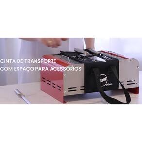 Desenvolvida com grelha móvel com 2 ajustes de altura e cinta que envolve o produto, permite que você mantenha facas, garfos e outros utensílios necessários para os churrascos junto a churrasqueira! Além é claro de oferecer muita praticidade ao transportar o produto.