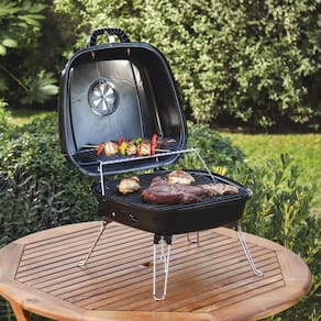 Aprecie o prazer de um autentico churrasco com a Churrasqueira a Carvao Portatil Mr. Beef. Com um design compacto e funcional, esta churrasqueira e perfeita para levar para qualquer lugar. Sua estrutura e feita em metal resistente, garantindo durabilidade e resistencia ao produto. O acabamento em preto contribui para um visual moderno e elegante. As dimensoes do produto sao 42x34x44,5 cm, tornando-o facil de transportar e armazenar.