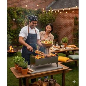 Características Principais: Material: Aço Inoxidável não enferruja Tipo: Portátil e desmontável Combustível: Carvão Design: Moderno e funcional Montagem: Rápida, sem ferramentas Uso: Ideal para camping, viagens, quintal, praia e lazer em família