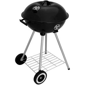 Outro grande diferencial é a mobilidade. A churrasqueira conta com alça prática para transporte e rodinhas que facilitam o deslocamento sem esforço, sendo ideal para áreas externas, quintais, garagens, sacadas e até mesmo para levar em viagens, acampamentos e passeios. Apesar de apresentar excelente capacidade interna, seu design compacto ocupa pouco espaço para armazenar, trazendo mais conveniência para o dia a dia. A grelha em arame cromado, com 41cm de diâmetro, e a grade interna de apoio tornam o preparo mais organizado e eficiente.