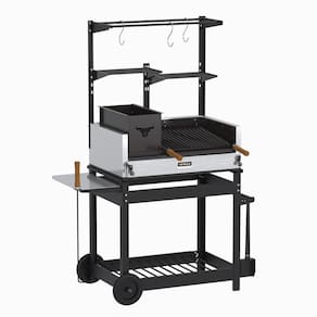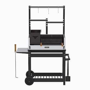 Tipo: Churrasqueira portátil Marca: Venax Revestimento externo da churrasqueira: Inox 304 Revestimento interno da churrasqueira: Aço esmaltado com base em tijolo refratário Tipo de braseiro (Fire Box): Fechado e móvel, pode ser utilizado nos 2 lados Material braseiro (Fire Box): Aço carbono revestido com esmalte vítreo Grelha: Estilo Argentina esmaltada Coletor de gordura: Aço esmaltado Varal de carnes e legumes: Duplo removível, com pintura epóxi Ganchos: Inox 304 maciço Grelha de apoio: Arame liso esmaltado. Descanso: Lateral em chapa Inox 304 Suporte para lenha: Revestido em pintura epóxi Dimensões da grelha principal (C x L): 50,7cm x 46cm Dimensões braseiro (Fire Box) (C x L x A): 21,5cm x 46cm x 25cm Medidas do produto: Altura 171cm - Largura 123cm - Profundidade 84cm