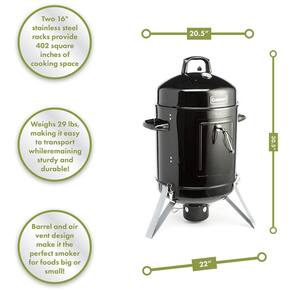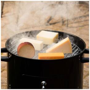Dois racks de aço inoxidável de 16 Fornecem 402 polegadas quadradas de espaço para cozinhar Tigela de água esmaltada de porcelana As aberturas superior e inferior fornecem um sistema duplo de ventilação Base de travamento Porta com dobradiças verticalmente Marca: Não Informado