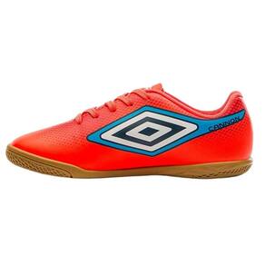 Indicada para os jogadores mirins iniciantes, a Chuteira Futsal Umbro Cannon Jr segue o mesmo design autêntico e ousado do modelo adulto, produzida em material de fácil limpeza e manutenção. O modelo exibe artes gráficas personalizadas em cores vibrantes que adicionam o melhor do estilo Umbro aos seus treinos e partidas. Seu cabedal é construído em material sintético laminado com aplicação de grafismo reticulado e forro em tecido de poliéster. Possui Diamante Umbro na lateral estilizado com a assinatura do modelo, atacador convencional e palmilha interna em EVA forrado. O solado de futsal é construído em blenda de TPU e PVC.