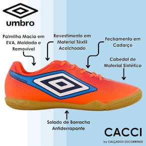 Feita pela Umbro, a chuteira Cannon, foi pensada para os jovens craques que buscam melhor desempenho dentro das quadras nas partidas de futsal. Com cabedal em sintético, além de contar com solado em borracha antiderrapante.
