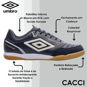 Combinando estilo e desempenho, a **Chuteira Futsal Umbro X-Comfort** é a escolha perfeita para quem busca mais do que apenas um visual clássico. Com detalhes gráficos personalizados e equipada com a tecnologia inovadora **BREEZE SYSTEM**, ela garante máxima respirabilidade para seus pés durante os jogos mais intensos. O solado foi projetado para oferecer amortecimento superior, conforto incomparável e alta durabilidade, ideal para longas partidas. A entressola em **EVA de ponta a ponta** proporciona um amortecimento responsivo a cada movimento, enquanto a sola de borracha antiderrapante garante tração e estabilidade, permitindo movimentos rápidos e seguros nas quadras.