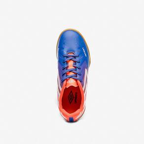 Cabedal confeccionado em material laminado de fácil limpeza e manutenção. Possui grafismos em “layers” com aplicação de verniz incolor sobre as artes, Diamante Umbro em destaque na lateral, assinatura do modelo na parte frontal e palmilha interna macia em EVA com tecido forrado. O solado de futsal é composto por blenda de PVC e TPU, que oferece aderência ao solo e durabilidade.