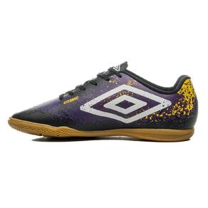 Descrição: Se você está procurando qualidade e conforto para brilhar nas peladas de final de semana, a nova Chuteira de Futsal Umbro é a escolha certa para você. Com um cabedal confeccionado em material sintético macio e levemente texturizado, o modelo conta com calcanhar acolchoado que oferece suporte e conforto durante o uso; além disso, o fecho em cadarço permite ajuste firme e eficaz. Já a entressola conta com uma tira em EVA para amortecimento leve e o solado de borracha garante mais segurança para você arriscar as melhores jogadas nas quadras cobertas e descobertas. Com design moderno, a peça conta com estampa que deixa seu visual boleiro diferenciado. Nome: Chuteira Futsal Umbro CosmicGênero: MasculinoTipo: FutsalIndicado para: Dia a DiaMaterial: SintéticoTrava: Sem TravaCabedal: Sintético macio e texturizado com calcanhar acolchoado e fecho em cadarçoEntressola: Camada em EVa para amortecimento leveSolado: Borracha antiderrapante para quadras indoorOrigem: NacionalMarca: Umbro