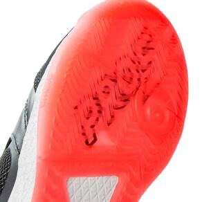 Solado de futsal com entressola BUMP de ponta-a-ponta e soleta em borracha, além de costura de reforço frontal.