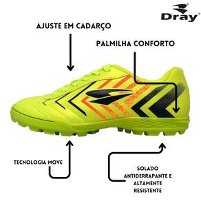 Com as chuteiras Dray com Tecnologia MOVE e Costura Frontal, você estará pronto para dominar o campo, com controle aprimorado e movimentação ágil que fazem a diferença no seu jogo. Escolha a qualidade e o estilo da Dray para elevar seu desempenho no futebol.