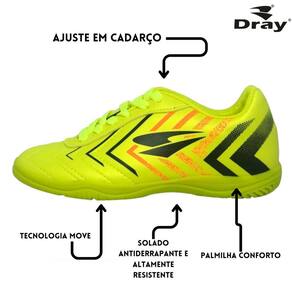 Com as chuteiras Dray com Tecnologia MOVE e Costura Frontal, você estará pronto para dominar o campo, com controle aprimorado e movimentação ágil que fazem a diferença no seu jogo. Escolha a qualidade e o estilo da Dray para elevar seu desempenho no futebol.