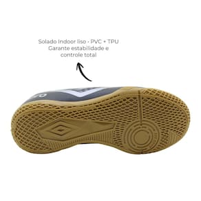 A palmilha anatômica em EVA garante excelente amortecimento e absorção de impactos, reduzindo o cansaço dos pés. Já o solado indoor liso, fabricado em PVC com TPU, oferece tração precisa, estabilidade e controle total dos movimentos, sem o uso de travas, perfeito para quadras. A biqueira reforçada aumenta a proteção, e o sistema de amarração assegura um encaixe firme e seguro. Uma chuteira completa para quem busca performance e conforto no futsal.