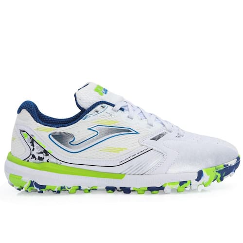 A Joma é uma marca internacional, mundialmente reconhecida pelos seus produtos de alta qualidade nos mais variados esportes, como, Tennis, futebol Americano, Corrida, Futsal, etc. Sempre oferecendo aos atletas produtos tecnológicos, confortáveis e preservando a segurança na hora da prática do esporte. Você pode conhecer através da Chuteira Joma Society Liga 5 Branca Azul e Verde projetado para permitir que seus pés se movam de maneira mais livre e natural, este tênis é perfeito para atletas que buscam otimizar seu desempenho.