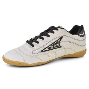 Chuteira masculina Indoor confeccionada em couro com detalhes, forro interno em tecido espumado proporcionando maior conforto para seus pés, palmilha em EVA de 3mm de espessura forrado em tecido jakard, solado em borracha com super aderência ao piso seco, resistente ao desgaste garantindo assim alta qualidade e durabilidade ao produto, chuteira muito leve por ser de couro e sola em borracha natural proporcionando satisfação, segurança e conforto para seus pés. Indicada para esport em quadra, futsal.