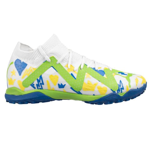 OBS:. Para esta edição especial da chuteira FUTURE Neymar Jr., a PUMA convidou onze crianças do instituto para criarem desenhos inspirados em Neymar Jr. Seus desenhos aparecem na parte superior, com cores brasileiras ousadas e suas assinaturas nos cadarços.