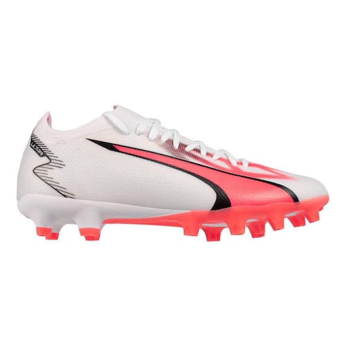 A Chuteira Puma Ultra Match TT BDP é perfeita para dominar cada lance da partida com categoria, confiança e controle nos quatro cantos dos gramados naturais. Sua estrutura oferece suporte, controle e excelente retorno durante os arranques de velocidade garantidos pelas tecnologia GRIP CONTROL PRO. Na palmilha, a tecnologia NANO GRIP foca na transmissão de energia otimizada e propriedades antiderrapantes. Seu solado com ranhuras de borracha é adequado para utilização em superfícies firmes naturais. Conta com design moderno na cor branca e com detalhes em rosa na lateral. Faça a diferença para o seu time, adquira já a sua chuteira Puma!