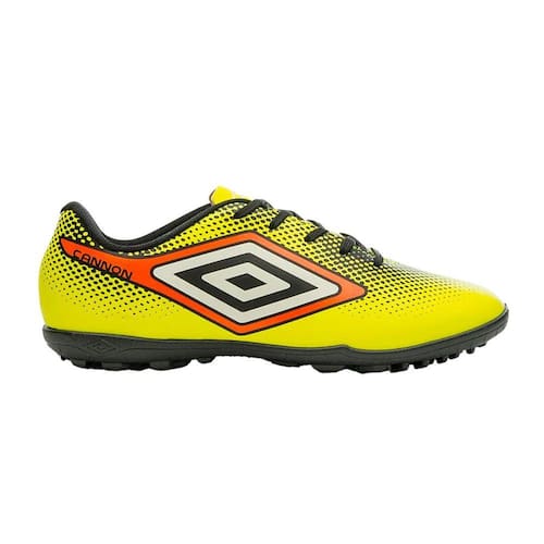 Com um design autêntico e ousado, a Chuteira Umbro Cannon Society Masculina Limao Laranja Preto é indicada para jogadores iniciantes que se destacam dentro do gramado sintético. O grafismo reticulado com efeito degradê traz personalidade e cores vivas no melhor estilo Umbro. O cabedal é construído em material sintético laminado com aplicação de serigrafia em 3 cores e forro em tecido de poliéster. Possui Diamante Umbro na lateral estilizado com a assinatura do modelo, atacador convencional e palmilha interna em EVA forrado. O solado de society HG é composto por blenda de TPU e PVC.