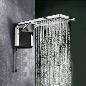 Características: - LED Orientativo - Indica o modo de funcionamento do produto. - Exclusiva resistência Loren Ultra - Longa duração em comparação as resistências comuns. - Eletrônica - Permite a escolha gradual e precisa da temperatura. - Tecnologia Press Plus - Jatos de alta performance mesmo com baixa pressão de água*. - Jato Multidirecional - Água na direção desejada. - Seletor para escolha do jato - Chuveiro ou ducha. - Haste de Comando - Controle de temperatura e seleção do tipo de jato ao alcance das mãos. - D.R.I. - Dispositivo de Regulagem de Inclinação. *com apenas 1m.c.a. dinâmico, o produto possui jatos de alta performance.
