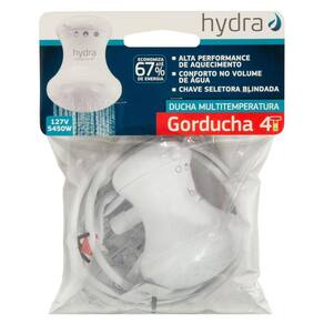 Chuveiro Ducha Elétrica Hydra Gorducha 4t 127v 5450W - Chuveiro Elétrico Gorducha 4 Temp. 127 V. 5400W Hydra. - A Gorducha inova dentro de sua categoria, colocando a segurança e a praticidade a favor de um banho mais relaxante. - Possui um copo de aquecimento de água, fazendo com que toda a água fique com temperatura uniforme. - O sistema multitemperatura permite um determinado número de opções para encontrar a temperatura certa da água e tomar um banho confortável, seguro e econômico em qualquer estação no ano. - Com as 4 versões de temperaturas permite 4 opções para encontrar a temperatura certa da água e tomar um banho com muito mais conforto, segurança e economia em qualquer estação no ano. Marca: Não Informado