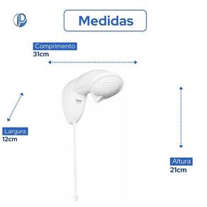 Características Técnicas: Voltagem: 220V Potência: 6.500W Controle de temperatura: Eletrônico, com ajuste gradual Resistência: Blindada Espalhador: 120 mm com 78 furos Pressão de funcionamento: 10 a 400 kPa 1 a 40 m.C.A Fiação recomendada: 6 mm Grau de proteção: IP24 Marca: Não Informado