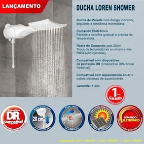O Loren Shower Ultra possui formato quadrado, seguindo as tendências de arquitetura. A Resistência Loren Ultra integra o conceito tecnológico do produto e garante alta performance e longa duração, se comparada às resistências comuns. O Loren Shower Eletrônico possui controle de temperatura gradual, sem a necessidade de aumentar ou diminuir a vazão da água para obter a temperatura desejada, garantindo comodidade e economia no banho.