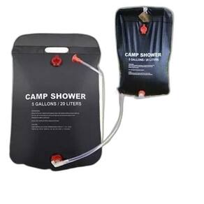 Feita de material PVC não tóxico e ecológico Capacidade de até 20 litros de água Aquecimento de água por energia solar Válvula de preenchimento com tampa de rosqueamento Mangueira de chuveiro flexível removível com botão de ligar/desligar Barra e corda para pendurar Leve e compacta, ideal para viagens Cor: Preto Especificações: