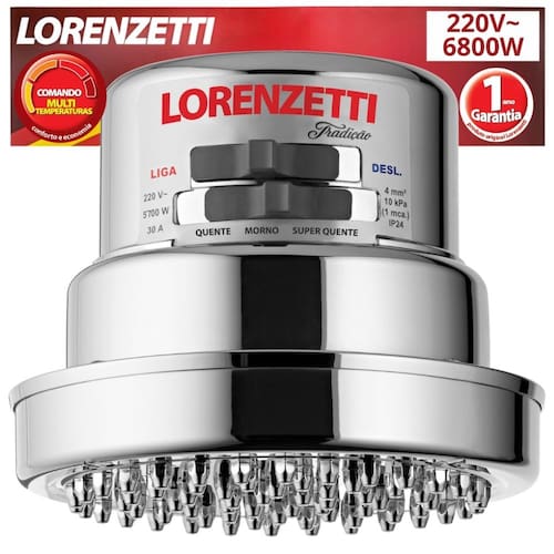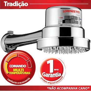 Chuveiro tradição 6.800 watts (220v) Descrição: O Chuveiro Tradição é um ícone da categoria de chuveiros. É sinônimo de banho. Ele é perfeito para combinar com os metais de seu banheiro. Seu espalhador moderno valoriza o design do chuveiro, proporcionando um banho vigoroso aliado a bom gosto e funcionalidade. Acabamento: Cromado. Potência: 6.800 watts. Tensão: 220 volts. Durabilidade e Segurança: Qualidade aprimorada ao longo dos anos. 4 Temperaturas: Mais conforto no frio e economia no calor. Espalhador diferenciado: Mais prazer no seu banho. Pressão de funcionamento: 10 a 400kPa (1 a 40mca). Grau de proteção: IP 24. Sistema de aterramento: Sim. Ducha manual: Sim Fios (mm2): 4. Disjuntor: 32 A.