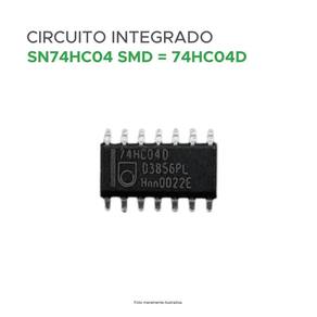 O SN74HC04 é um circuito integrado lógico da família HC com seis inversores portas NOT independentes. Ele é amplamente utilizado em aplicações digitais onde são necessárias inversões de sinais lógicos. O encapsulamento SMD facilita sua montagem em placas de circuito impresso compactas.