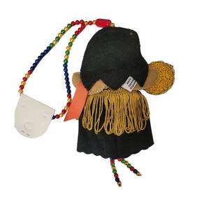 Material composição: Feltro, enchimento de espuma, pedra olho de gato, pérolas.