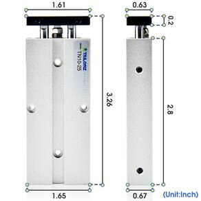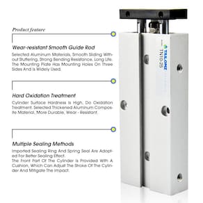 Conteúdo da embalagem: 1 peça cilindro de ar (TN10-25-S) 2 peças de encaixe pneumático de 6 mm (PC6-M5) 2 peças de encaixe pneumático de 4 mm (PC4-M5) 1 peça de fita de teflon Modelo: TN10-50-S Material: liga de alumínio e metal Tipo de ação: Dupla Ação Meio de funcionamento: Ar Potência: Pneumático Max.Press: 1MPa/145Psi Tamanho da porta: M5 Se você precisar verificar o tamanho do cilindro de ar, há uma introdução detalhada em nossa terceira imagem. ? Característica Anel de poeira de alta qualidade para proteger o rolamento A vida útil do rolamento de óleo é mais longa, melhor haste de pistão, aperto, adequada para uso a longo prazo ? NOTA: Por favor, permita um erro de medição manual de 0,1-1 mm, obrigado pela sua compreensão - ?Nome do produto?Cilindro de ar de dupla ação de haste dupla - ?Tamanho?10 mm furo 25 mm curso; tamanho da porta: M5 - ?Pressão operacional:?0-1,0mpa | 0-145psi. - ?Material?Feito de liga de alumínio e metal, corpo do cilindro espessado, haste de vedação de alta qualidade, graxa importada. - ?Sobre acessórios?O cilindro de ar vem com 4 peças de 4 mm (2 peças) e 6 mm (2 peças) e o garfo da extremidade da haste para montar os cilindros, fácil de instalar, não é necessário comprar acessórios separadamente.