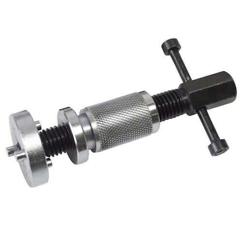 Características destacadas Feito de aço carbono sólido com acabamento antiferrugem. Perfeito para remover/instalar peças de encaixe por pressão, como juntas esféricas, juntas universais e pinos de ancoragem de freio de caminhão. Para uso em pinças de freio a disco instaladas em muitos carros europeus e japoneses com rosca à direita. Completo com placa de reação e acionamento reversível de pino de cabeça dupla de 3/8". Extremidade hexagonal de 19 mm para soquetes e chave. Veja menos