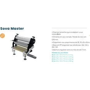 Preparar massas com o sova master ficou muito mais rápido e prático. Ideal para laminar massas para pães, lasanhas, pastéis e muito mais. Os cilindros são cromados, possuem regulagem de espessura e a fixação para prender o produto em uma superfície é por morsas reguláveis.