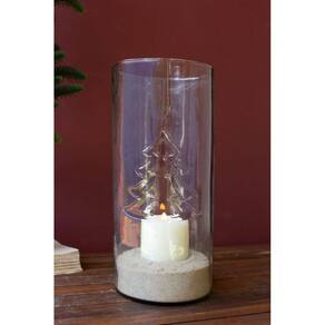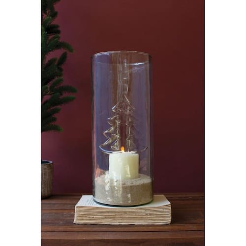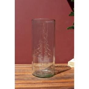 Este cilindro de vidro transparente com uma árvore de Natal em relevo está pronto para sua casa nesta temporada de festas. Encha-o com pinhas, uma vela ou outras guloseimas natalinas para uma exibição de mesa exclusiva. Esta peça é a nova âncora para sua peça central.