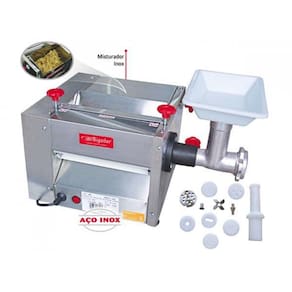 O Cilindro elétrico Bigolar é Sovador, Misturador e Extrusor de Massas e moedor de carnes.É um produto 4 em 1 muito versátil, compacto e muito fácil de ser utilizado.Para quem trabalha em casa ou em restaurantes fazendo pratos fora, este cilindro semi-profissional faz praticamente tudo sozinho, preparando uma grande quantidade de massas ou misturando e moedo carnes.Tudo para agilizar seu tempo na cozinha na produção de alimentos. Desde baguetes até pastéis, lasanhas, pizza e muito mais.É importante que antes de utilizar o produto você leia atentamente o manual das instruções, pois elas garantirão sua segurança e eficácia.Antes de ligar a máquina, verifique se a tensão é a mesma de sua rede elétrica.Coloque o equipamento somente sobre superfícies planas, firmes, limpas e secas.Retire as peças que se encontram dentro da cuba do tacho. Observe que ao levantar a tampa do misturador (tacho), existe um sensor que vai desligar a máquina automaticamente, para ligar a máquina novamente, deverá baixar a mesma ao seu local de origem. Para sovar pães e cucas deixe a regulagem dos rolos bem abertos e largue a massa em pequenas proporções para não sobrecarregar o equipamento.Para regular a espessura da massa use os reguladores, localizados na parte de cima do cilindro com o cuidado de manter a mesma regulagem nas duas extremidades para evitar que a massa se desloque para os lados, sendo assim procure utilizar mais o centro dos rolos.Sempre desligue o aparelho e desconecte da fonte de energia antes de mudar os acessórios ou aproximar as partes que se movem em uso.O equipamento possui uma única velocidade de funcionamento para todos os acessórios.Para fazer massas e bolachas encaixe o cabeçote do extrusor na tomada de força e aperte o manípulo de fixação, coloque o caracol e rosqueie na ponta um parafuso chato, então escolha o modelo de massa, coloque o molde desejado e aperte novamente (não apertar demais, só encostar, elas se travam com pressão ao extrusar).Atenção, não empurre a massa contra o caracol com os dedos e nem mesmo com o socador, pois o caracol se encarrega de puxar.Para moer carne use o mesmo processo para fazer massas, porém substitua o parafuso chato pela ponteira com rosca, onde deverá ser encaixada a cruzeta, ela deve ficar com a parte cortante virada para frente onde em seguida vai o disco.Na montagem, observar que o cabeçote do picador de carne e extrusor para massas possui um rolamento na parte de trás do caracol. Tomar o cuidado de colocar uma gota de óleo de máquina ou banha, toda vez que for usar. Não faça massa sem antes lubrificar o rolamento.Indicação do cilindro elétrico: Ideal como cilindro sovador extrusor de massas com moedor carne (4 em 1).Características do cilindro elétrico: Medidas: A-32cm x L-55cm x P-37cm. Peso: 21,700 kg. Motor: 1/4cv Bibolt 127/220v. Produção de massa sovada: 8Kg/h. Produção de carne moída: 50Kg/h. Para 02 kg de farinha. Garantia: 06 meses contra defeitos de fabrica. Grande rede de assistência técnica no Sul do Brasil. Marca: Bigolar. Modleo: 1420. Procura um produto funcional e de alta durabilidade Encontrou agora A montagem, aplicação, uso e instalação do produto é de responsabilidade do cliente. As imagens do site são ilustrativas, podendo variar a percepção de cor conforme a iluminação do seu monitor. O vídeo sugerido tem apenas o intuito de ajudar o entendimento. São de canal aberto, podendo não representar o produto ou atividade especifica. Mais informações sobre as negociações. Veja os termos e condições de uso do site.