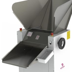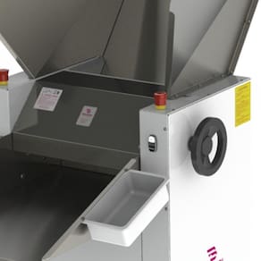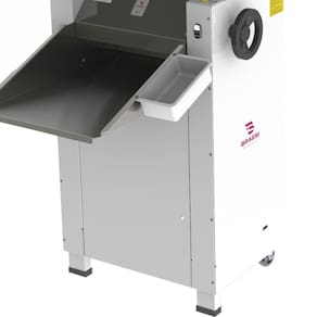 Esse Sovador é fabricado com bandeja em aço inox e estrutura em pintura epóxi seus eixos são apoiados sobre rolamentos com capacidade para até 15kg de massa contando com tensão monofásica 220V e dois motores com potência de 1800 W.