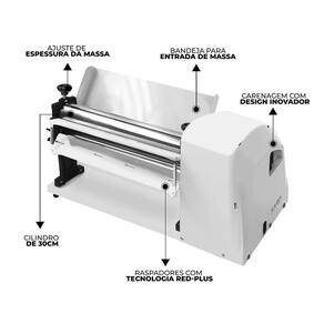 Cilindro Laminador Cromado Elétrico de Massas Pão Pizza Pastel 30cm Saro Voltagem: 220V O Cilindro Elétrico de Massas da Saro possui rolos de 30cm de largura. Extremamente robusto e com um design inovador, este laminador possui uma bandeja reclinável para entrada da massa, atribuindo mais agilidade, facilidade e praticidade durante o uso. Este cilindro serve para laminar, cilindrar ou até mesmo sovar massas de todos os tipos, inclusive massa biscuit e pasta americana. Capaz de preparar massas de 0 até 30cm de largura/diâmetro, este laminador possui capacidade de laminar até 0,6kgs de massa por vez. Com carenagem 100% de metal, pintura anti risco e motor de alta tecnologia, este equipamento possui ótima durabilidade para anos de uso. Características: - Possui sistema de segurança integrado de paralisação total - Ideal para - Rolo em aço cromado - Laterais reforçadas em Nylon - Lamina 20 metros de massa por minuto - Possui 4 rolamentos dentro dos cilindros - Rolo com 30cm de aproveitamento - Possui raspadores, para não grudar a massa e para manter o rolo limpo após o uso - Base em MDF laminado próprio para contato com o alimento. - Mesa de apoio reclinável - facilita a laminação sem que haja esforço manual - Pés emborrachados - evitam vibração e não derrapam com o uso - Motor 1/3 CV de alta performance - Produto certificado pelo INMETRO Especificações: - Material: Inox e Aço Carbono - Motor: 1/3CV - Frequência: 50/60Hz; Dimensões: - Comprimento: 45 cm - Largura: 26 cm - Altura: 25 cm - Peso: 10kg Itens inclusos: - 01 Cilindro Laminador Elétrico Branco 30cm Saro - 02 Manípulos para regulagem da espessura da massa - 01 Manual de Instruções : 6 meses de oferecidos pela Saro Informações Importantes Comprando conosco, sua compra será enviada muito bem protegida, além de possuir . Toda compra é enviada o mais rápido possível, no prazo máximo de 1 dia útil. Nós da Dalia Varejo temos compromisso com a rapidez Marca: Não Informado Ean: 7890019419800